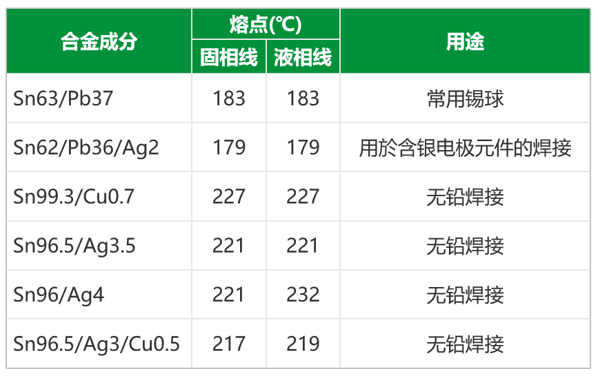 同方 BGA 焊錫球產(chǎn)品球徑可涵蓋 0.05mm至 1.30mm,同時(shí),在傳統(tǒng)錫、銀、銅三元合金基礎(chǔ)上,開(kāi)發(fā)出多元合金,為客戶(hù)提供定制化的服 務(wù)。針對(duì)不同熔點(diǎn),不同應(yīng)用領(lǐng)域,我們還開(kāi)發(fā)出一系列適用于不同應(yīng)用溫度和焊接要求的焊錫球產(chǎn)品,如低溫焊錫球 (95-135°C)、高溫焊球(186-309°℃),耐疲 勞高純度焊錫球、Ultra low α 焊錫球等等。
