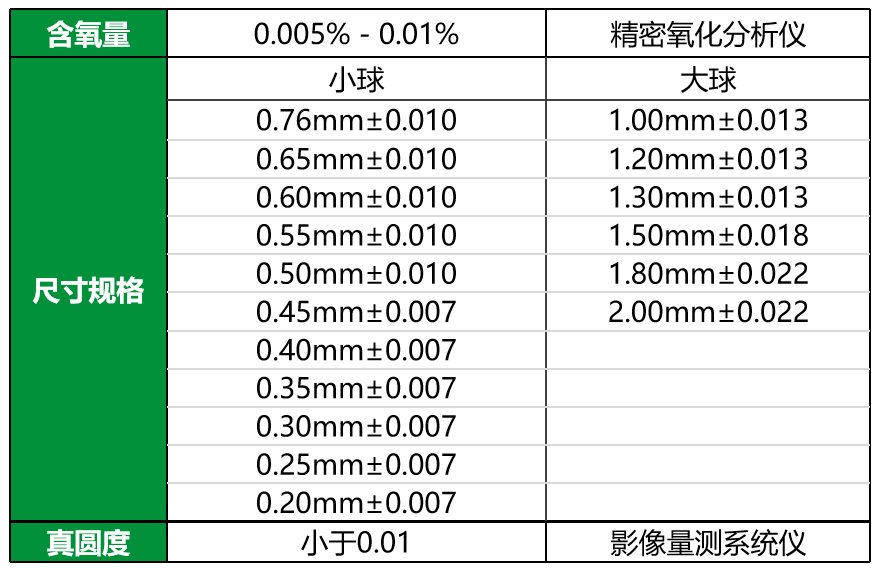錫球外觀呈球形,表面光滑,無(wú)氧化、無(wú)裂紋、無(wú)凹陷等缺陷。錫球尺寸規(guī)格多樣,小球直徑通常在0.2mm至0.8mm之間,也有根據(jù)具體封裝需求選擇;大球直徑為1.0mm至2.0mm之間。